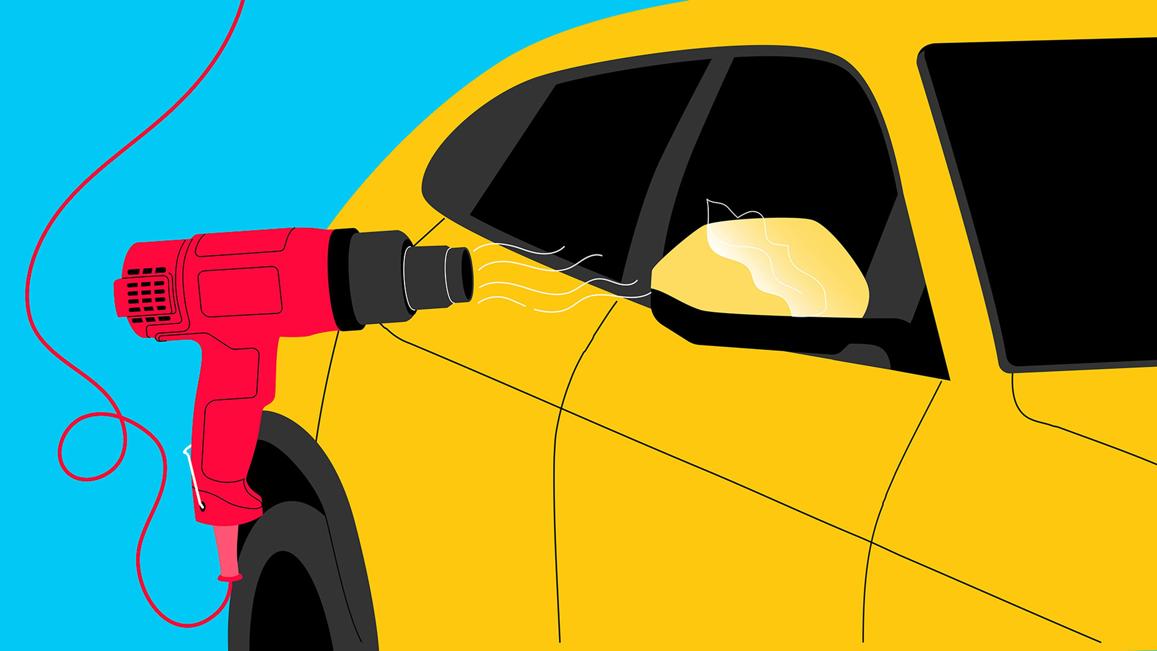 If you’re doing it during the cold season, park the car inside a warm garage at least a day before the procedure to soften up the film and adhesive. However, if it’s a hot summer day, just park your car in direct sunlight – this will greatly soften the adhesive in a few hours.