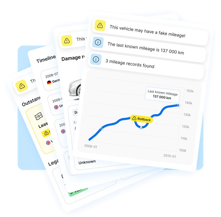 Выявляй повреждения, скручивания пробега и прочие дорогостоящие проблемы как можно раньше, избегая финансовых ям, которые могут стоить не одну тысячу.