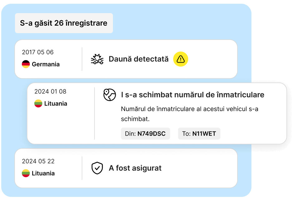 Când culegem date despre Daune, verificăm peste 330 de milioane de înregistrări ca să-ți arătăm exact unde și când s-au produs, plus cât se poate să fi costat reparațiile (dacă aceste date sunt disponibile).
